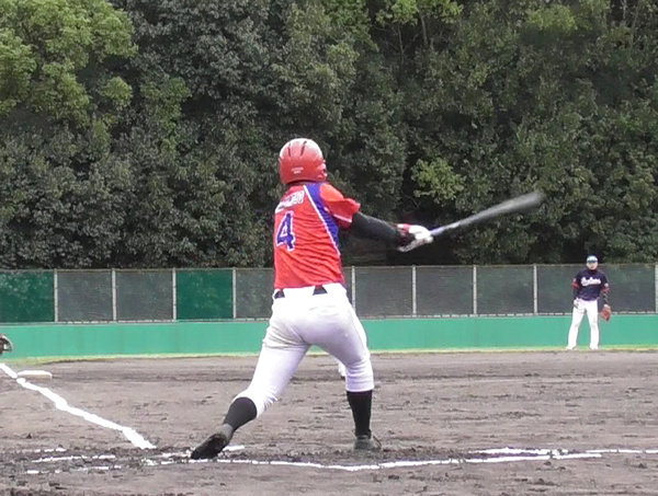 服部外野手、強肩強打でチームを引っ張る(対ドミノスラッパーズ)