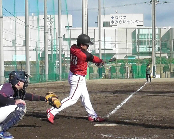 ミートもさることながら、一発長打も魅力 河原内野手「8」(対難波ヤンキース)